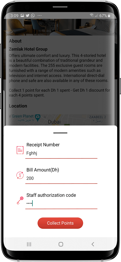 the Collect Points button for the hotel or outlet in question. A staff