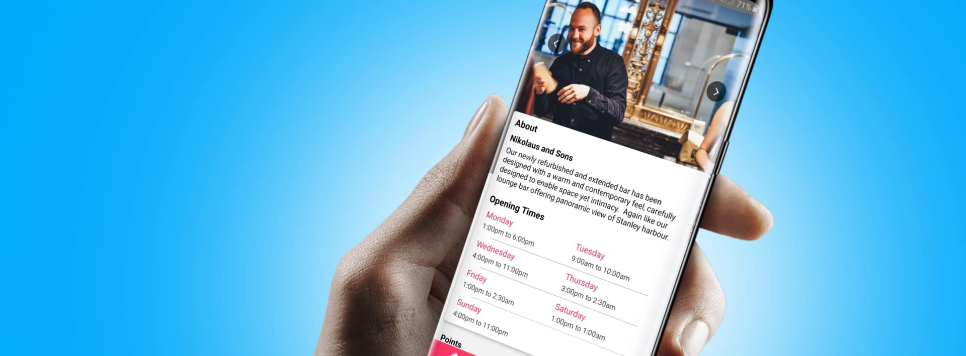 Now, what is easier than that to understand? The first time a customer visits he is invited to download the app upon being presented with the bill. He can immediately accumulate points that he can use during a next visit.
