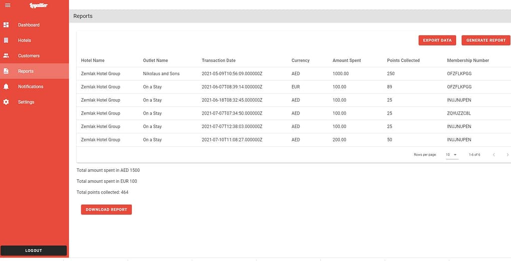 All data (customer data, collection and redemption transactions, hotel and outlet information) are accessible through reports and can be exported in Excel or csv format. The data are yours and you are never tied in with us. You can terminate your subscriptionn on a monthly basis.